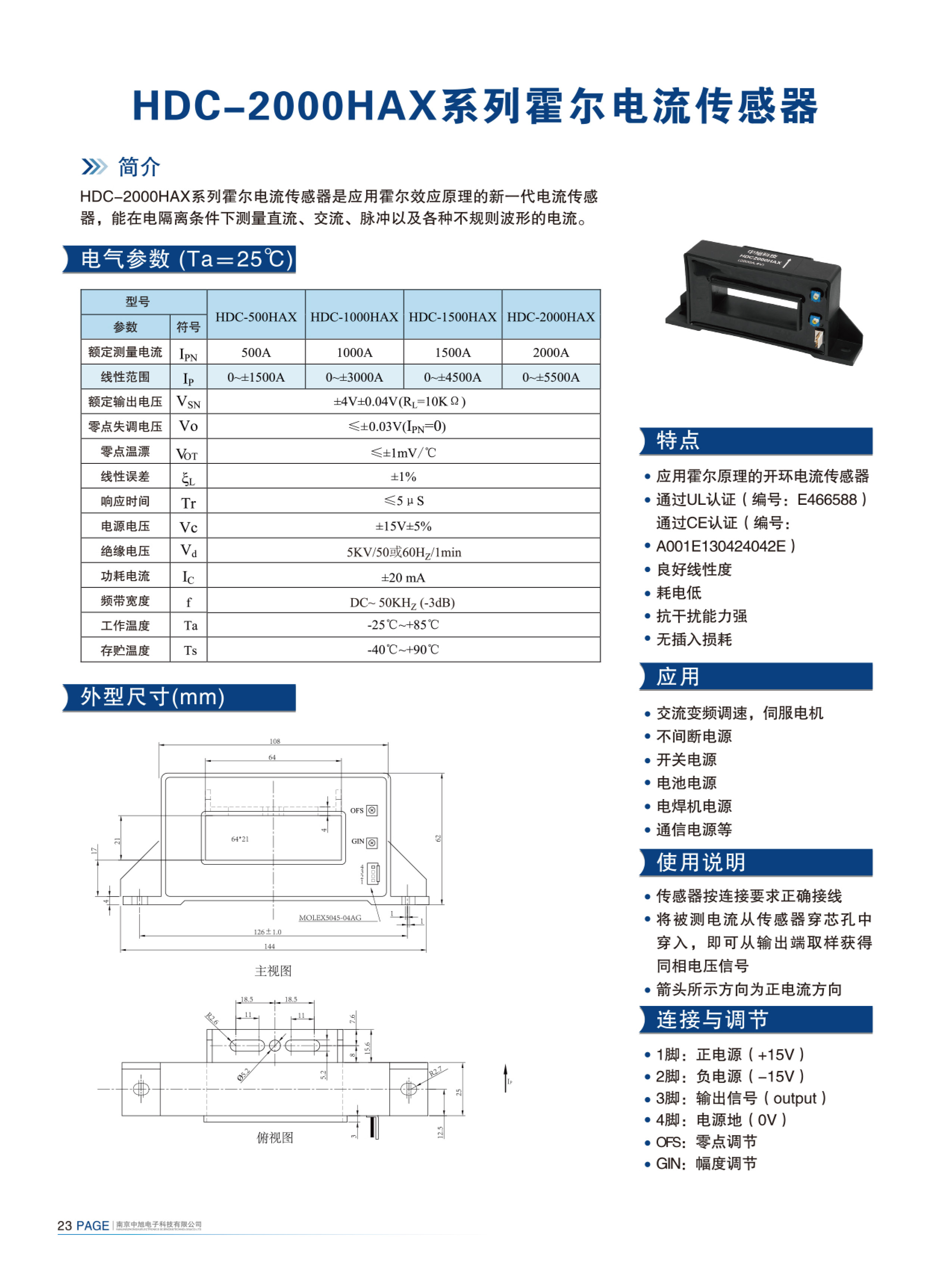HDC-2000HAX系列霍爾電流傳感器是應(yīng)用霍爾效應(yīng)原理的新一代電流傳感器,能在電隔離條件下測(cè)量直流、交流、脈沖以及各種不規(guī)則波形的電流。